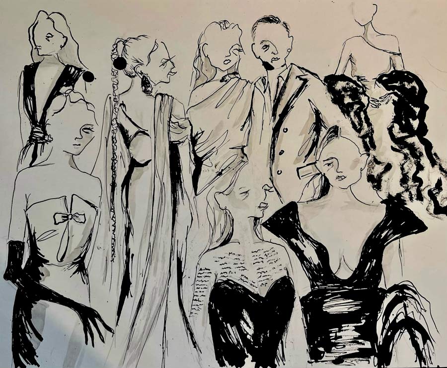 Jag kan tänka mig att många hade önskat sig några fler färgklickar men jag som älskar svart började istället kolla på detaljerna. Det var långa, svarta handskar à la Breakfast at Tiffany's, en otrolig knytblus under en smoking på Lars Wallin och svart body under en transparent paljettklänning på Alba August. En annan otrolig detalj var en otrolig, djup urringning i spets på Lena Olin. Hedda Stiernstedt hade gått all in som vanligt i en enaxlad, asymmetrisk klänning och en dramatisk, tjock kappa värdig Met-galan.