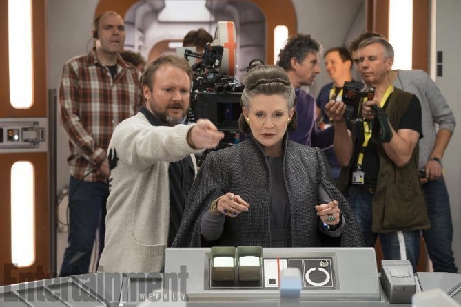 Star Wars: The Last JediL to R: Director Rian Johnson with Carrie Fisher (Leia) on set
