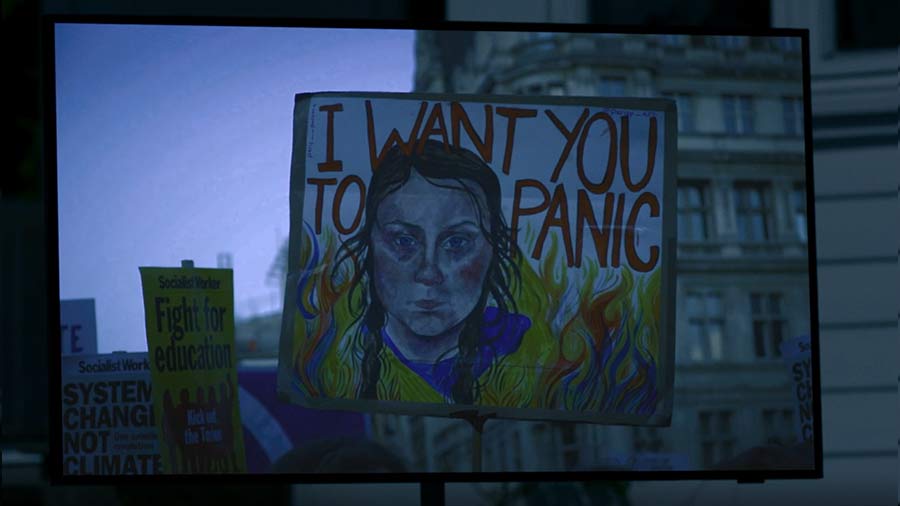 I inledningen av "Exit" säsong 3 drivs det om Greta Thunbergs kamp för miljön. Olycklig tajming kan tyckas med tanke på klimataktivistens situation i Oslo.